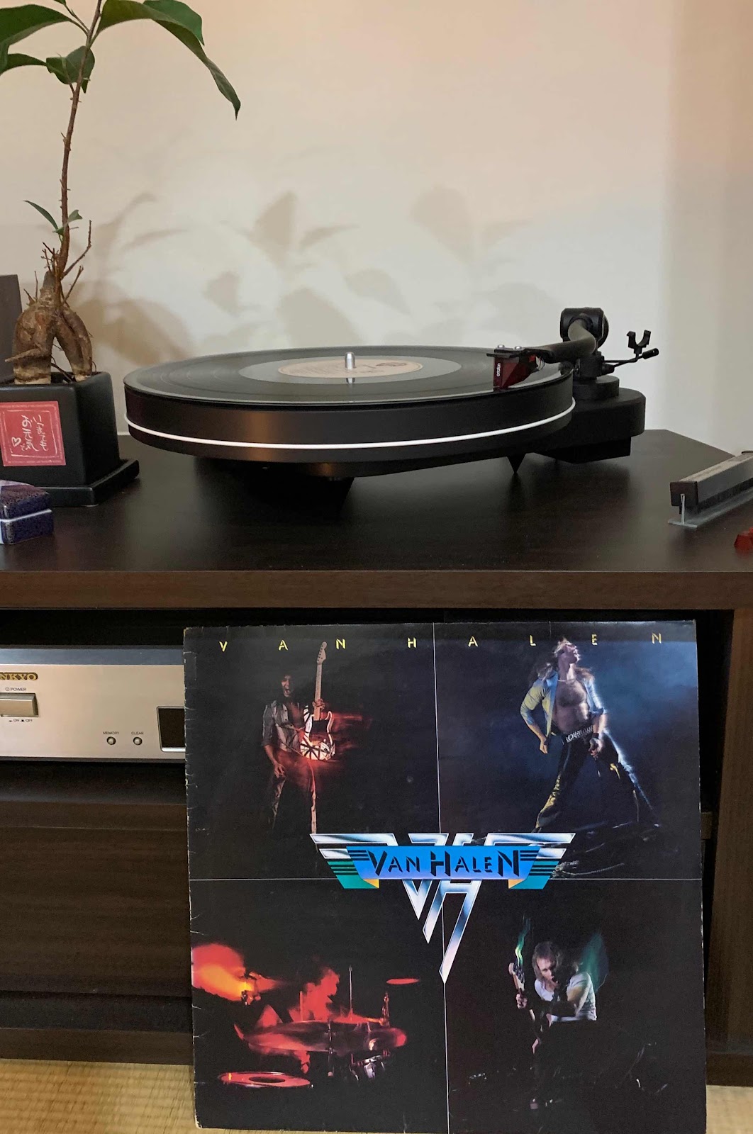 A面、B面、一度きりでは物足りず、二度続けて回しました。2度目には、レコードプレーヤがより温まって、音質がさらに良くなり、まるでヴァン・ヘイレンがすぐそばで演奏しているような臨場感でした。近年では、音楽を聴く手段が多様化しておりますが、こういうところがレコードプレーヤーならではの魅力だと思います。